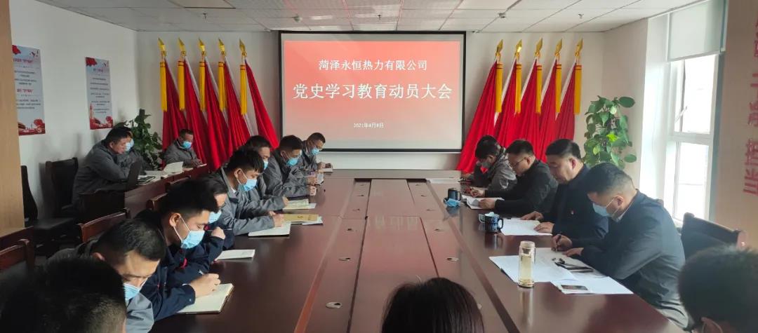 為進(jìn)一步提高黨員干部學(xué)黨史、強(qiáng)信念的主動(dòng)性和積極性,推動(dòng)黨史學(xué)習(xí)教育真正學(xué)有所悟、學(xué)有所成,4月8日,菏澤永恒熱力召開(kāi)黨史學(xué)習(xí)教育動(dòng)員大會(huì),對(duì)黨史學(xué)習(xí)教育進(jìn)行專(zhuān)題安排部署。會(huì)議由公司黨支部書(shū)記、董事長(zhǎng)肖培飛主持,中層副職以上干部、全體黨員、入黨積極分子共計(jì)44人參加了會(huì)議。