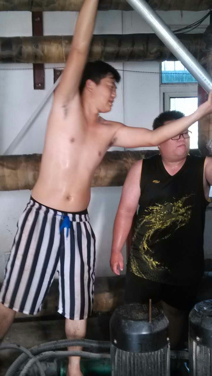 酷暑下清洗換熱器的隊員們