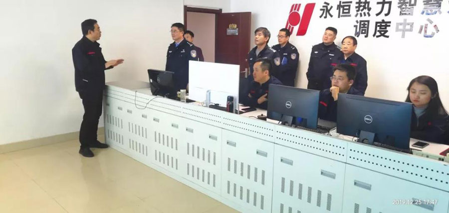 座談結束后,市公安局城市警察支隊李政委一行參觀了永恒熱力智慧熱網調度中心,了解目前供熱運行現狀。