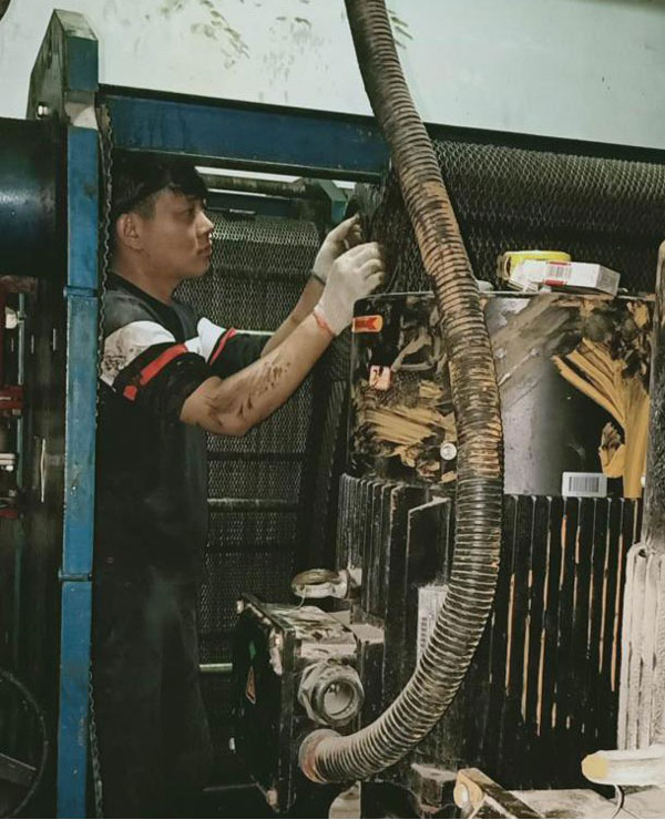 下午4時(shí)左右,在天闊逸城小區(qū)的換熱站內(nèi),家屬院角落處的供熱設(shè)備機(jī)房?jī)?nèi)悶熱狹小,空氣流通不暢,剛進(jìn)去一小會(huì)就已經(jīng)汗流浹背。運(yùn)營(yíng)管理四部部長(zhǎng)馬成喜正在和部門同事們清洗換熱器,沖洗換熱片時(shí),污漬大片濺到身上、衣服上,但是現(xiàn)場(chǎng)無一人抱怨,大家分工協(xié)作,輪流沖洗。